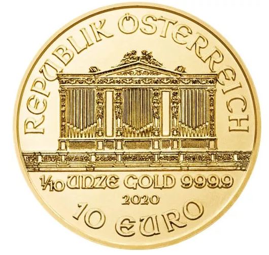 Austrian Gold Philharmonic coins are available from the Austrian Mint each year in 1 oz gold and four fractional-ounce coins. The most popular weight, by sales, among those four fractional-ounce coins is the 1/10 oz Gold Philharmonic. Today, the 2020 1/10 oz Austrian Gold Philharmonic Coin is available to you online from JM Bullion.